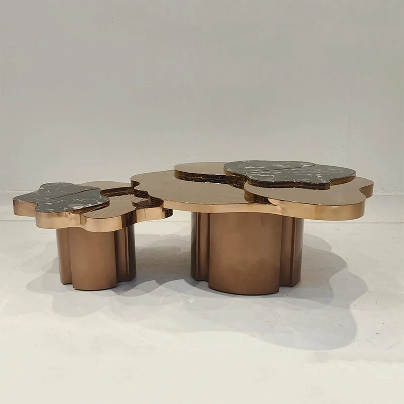 Table basse de luxe italienne en acier inoxydable, haut de gamme, Villa, salon, Table à thé créative, meubles de maison artistiques irréguliers FYCT