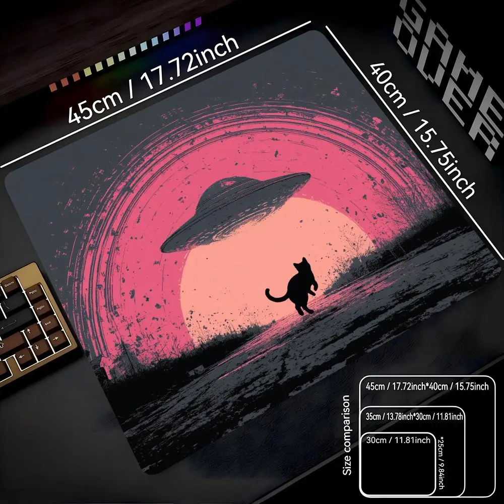 Tapis de souris petit format motif Alien Chat avec bord cousu, pour gaming et bureau, base en caoutchouc antidérapante, lavable, pour ordinateur portable et ordinateur de bureau