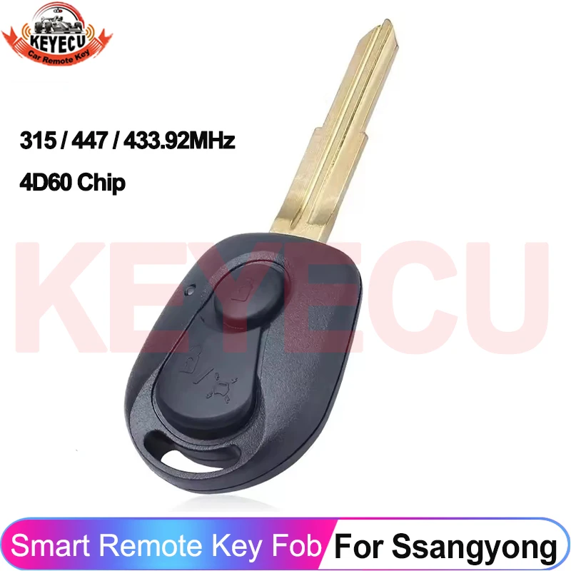Clé de voiture à distance automatique à 2 boutons KEYECU 315 MHz / 447 / 433,92 MHz avec puce 4D60 pour Ssangyong Actyon Kyron Rexton