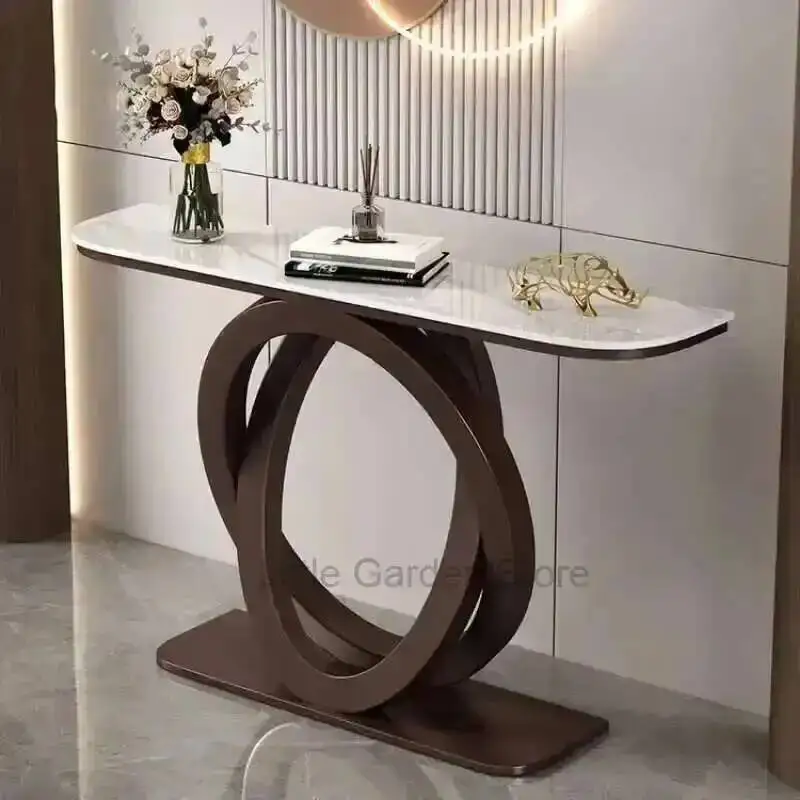 Table console semi-circulaire en ardoise italienne de luxe en fer, meuble d'entrée, table de chevet créative pour couloir, bureau d'appoint
