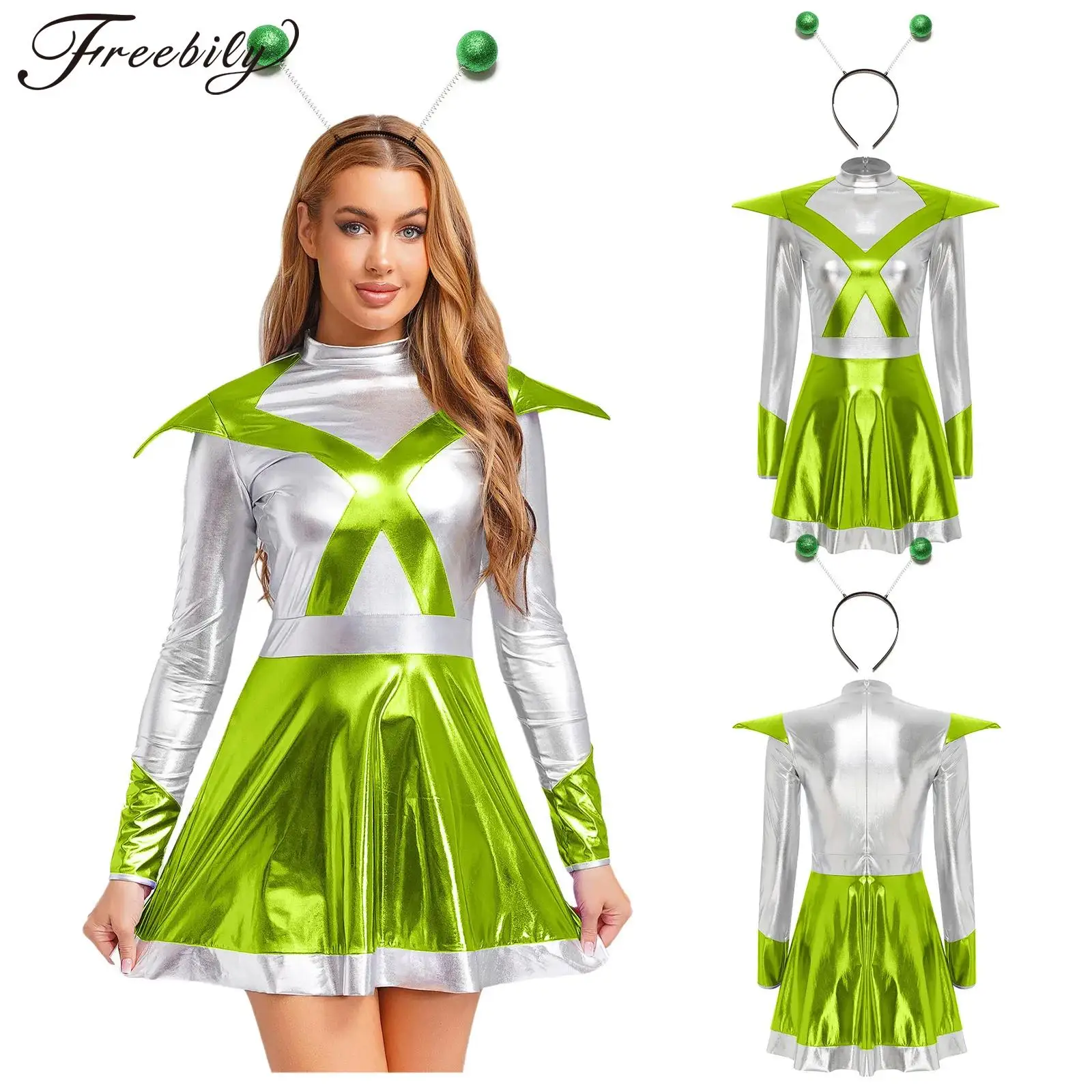 Costumes de guerrière de l'espace pour femmes, costumes de cosplay de robot extraterrestre, fête d'Halloween, robes de fantaisie d'astronaute avec serre-tête