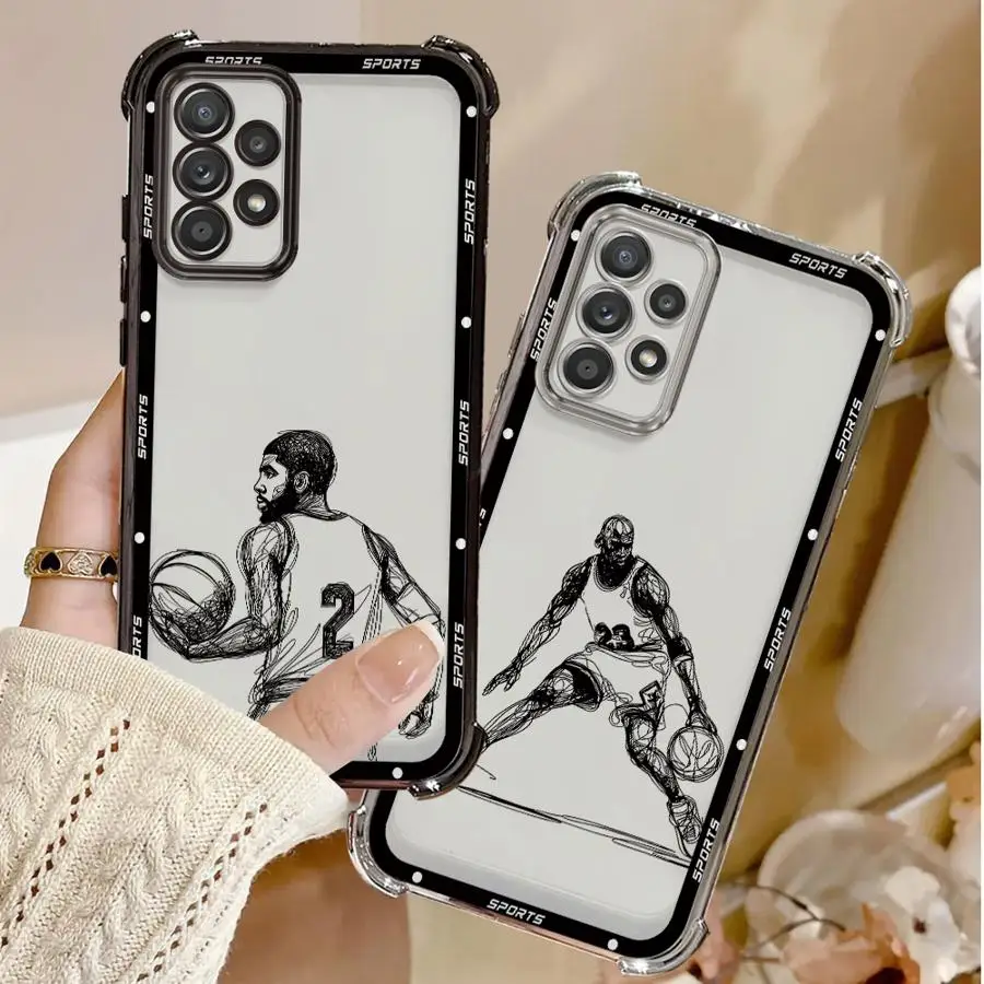 Étui de téléphone pour Samsung Galaxy A21s A24 A52 A17 A25 A15 A16 A35 A36 A13 A26 A33 avec motif de star de basket-ball de dessin animé
