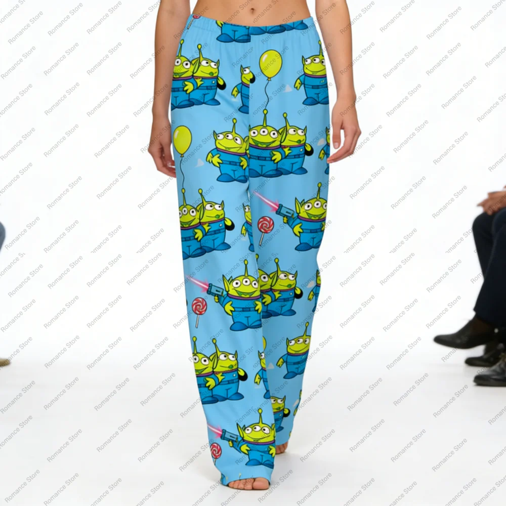 Pantalon de pyjama Disney à trois yeux imprimé Toy Story Aliens pour femmes, pantalon d'animation en soie de lait, nouveaux bas de vêtements de nuit pour dormir