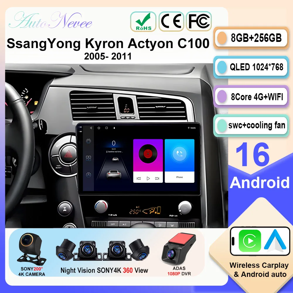 Android 16 pour SsangYong Kyron Actyon 2005 - 2013 RHD LHD Auto Radio lecteur multimédia GPS Navigation écran tactile unité principale DVD