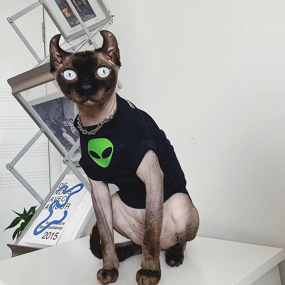 Vêtements pour chat sphynx 2026Alien, t-shirt printemps été, vêtements pour chat sans poils, gilet en coton pour chat sphynx, tenue pour chat, costume pour animal de compagnie printemps été