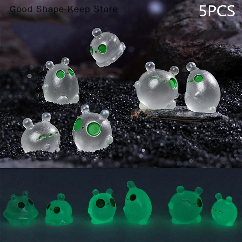 Mini poupée Alien scintillante, 5 pièces/sac, ornement de voiture en résine, Micro Figurines de paysage, accessoires de décoration pour la maison, jouet lumineux, cadeau