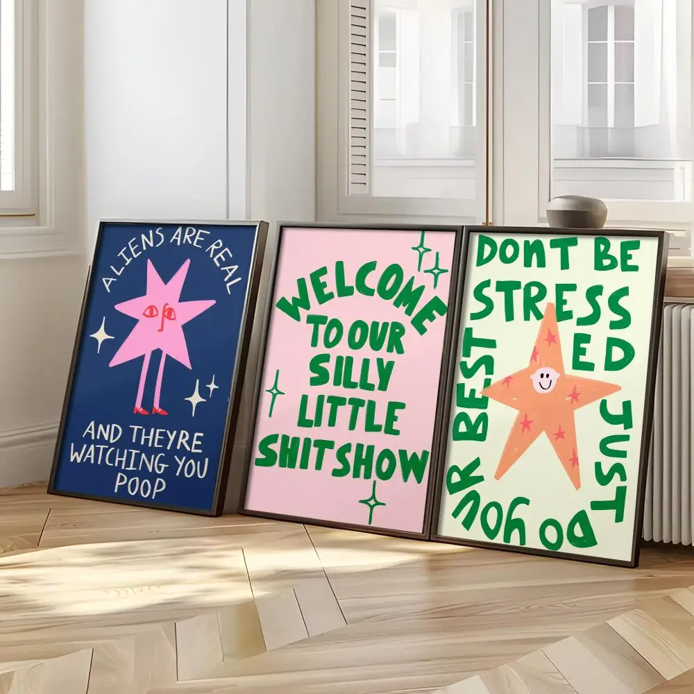 Autocollant mural Simple sans cadre, Slogan humoristique extraterrestre pour toilettes et salle de bains, joli affiche de Bum, pour la décoration de la maison et du salon