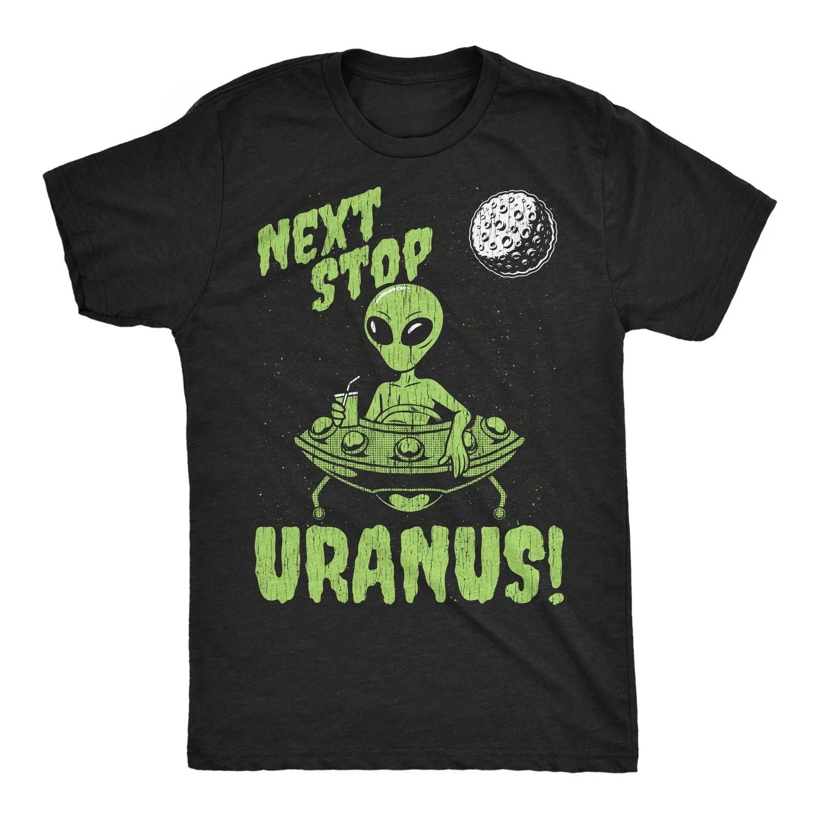 T-shirt fantaisie unisexe « Next Stop Uranus » – Cadeau sarcastique pour fans d'OVNI et d'extraterrestres – Streetwear oversize décontracté en coton vintage pour l'été