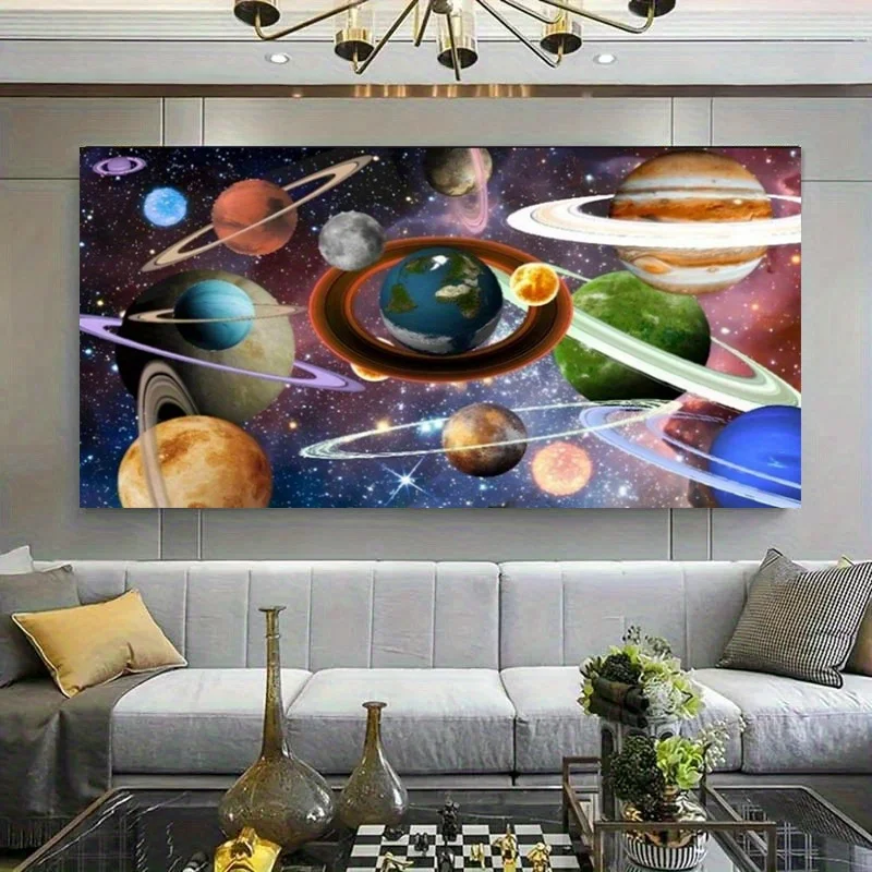Peinture diamant faite à la main 5D Extra Large, 200.0x80.01 cm, art mural cosmique vibrant avec planètes, étoiles et pour design de galaxie