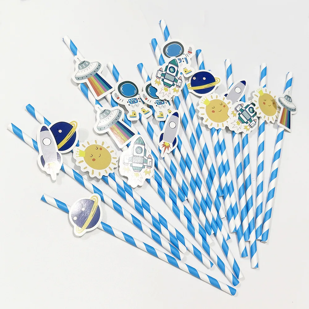20 Pailles en Papier Jetables à Thème Espace Cartoon Astronaute Fusée pour Anniversaire d'Enfants Baby Shower Décoration de Fête