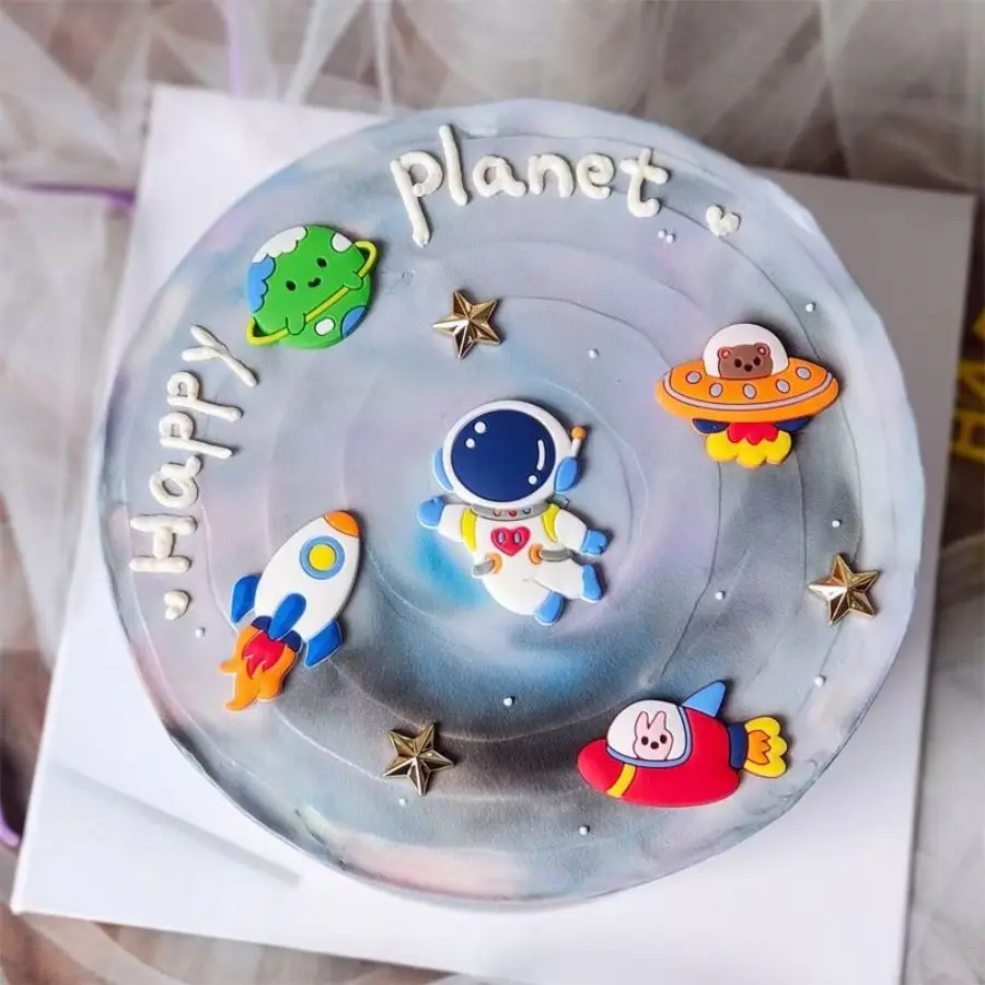 Décoration de gâteau d'anniversaire d'astronaute de dessin animé, ornement créatif, fusée, vaisseau spatial, thème spatial, fête d'anniversaire, plug-in de cuisson