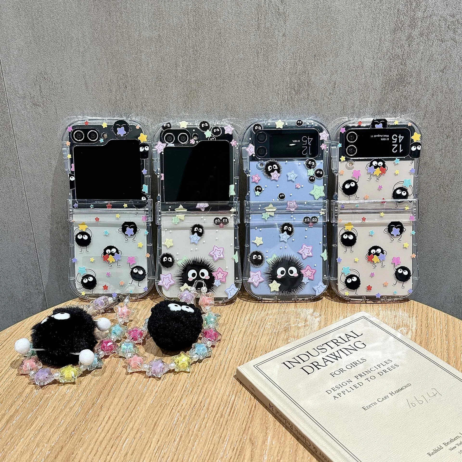Dessin animé boule de charbon elfe étoile pendentif coque de téléphone pour Samsung Galaxy Z Flip 6 5 4 couverture rigide pour ZFlip7 Zflip6 5 support de coque mignon