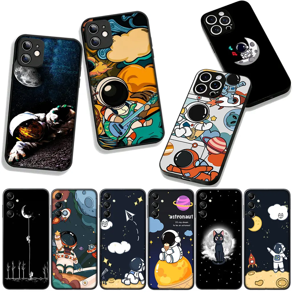 Coque de téléphone pour OPPO A54 A40 A60 A80 A18 A16 A17 A38 A78 A79 A57 A55 A3 Pro A96 A15 A12, motif lune, étoiles, ciel, astronaute, chat, fusée