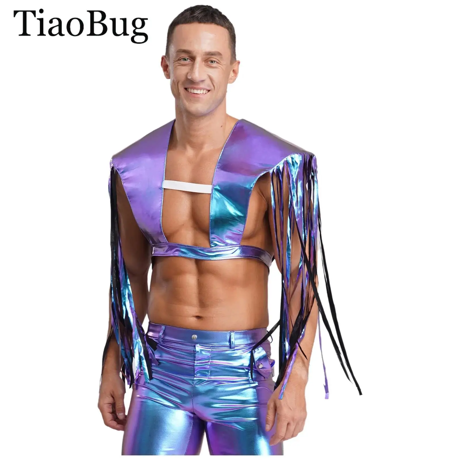Adulte femmes hommes brillant métallique haussement d'épaules châle Halloween Cosplay gothique Punk Cape fantaisie Alien Robot astronaute frange armure châles