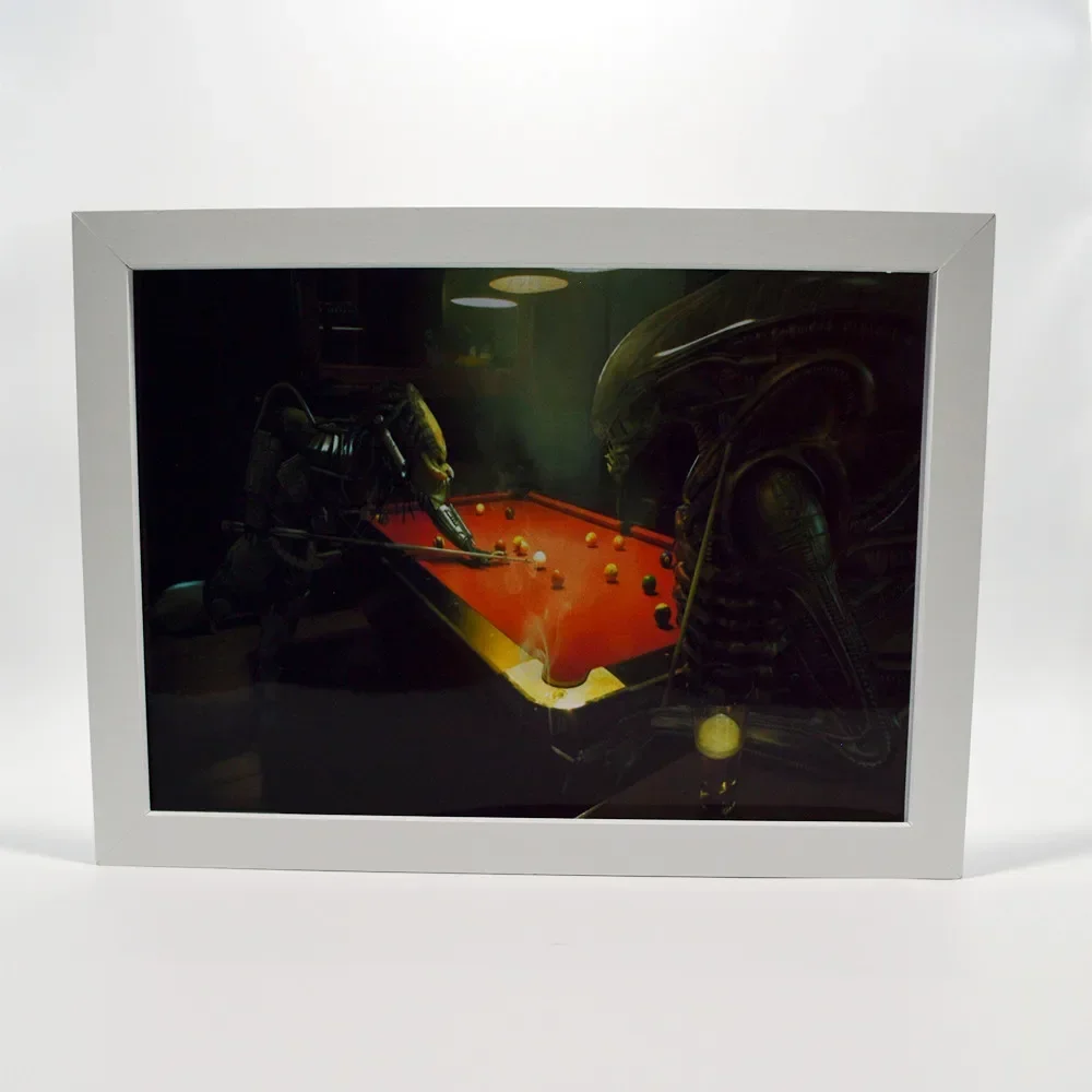 Affiche d'art de billard Transformez votre chambre avec le grand extraterrestre VS Predator, autocollants en vinyle holographiques uniques, peinture murale