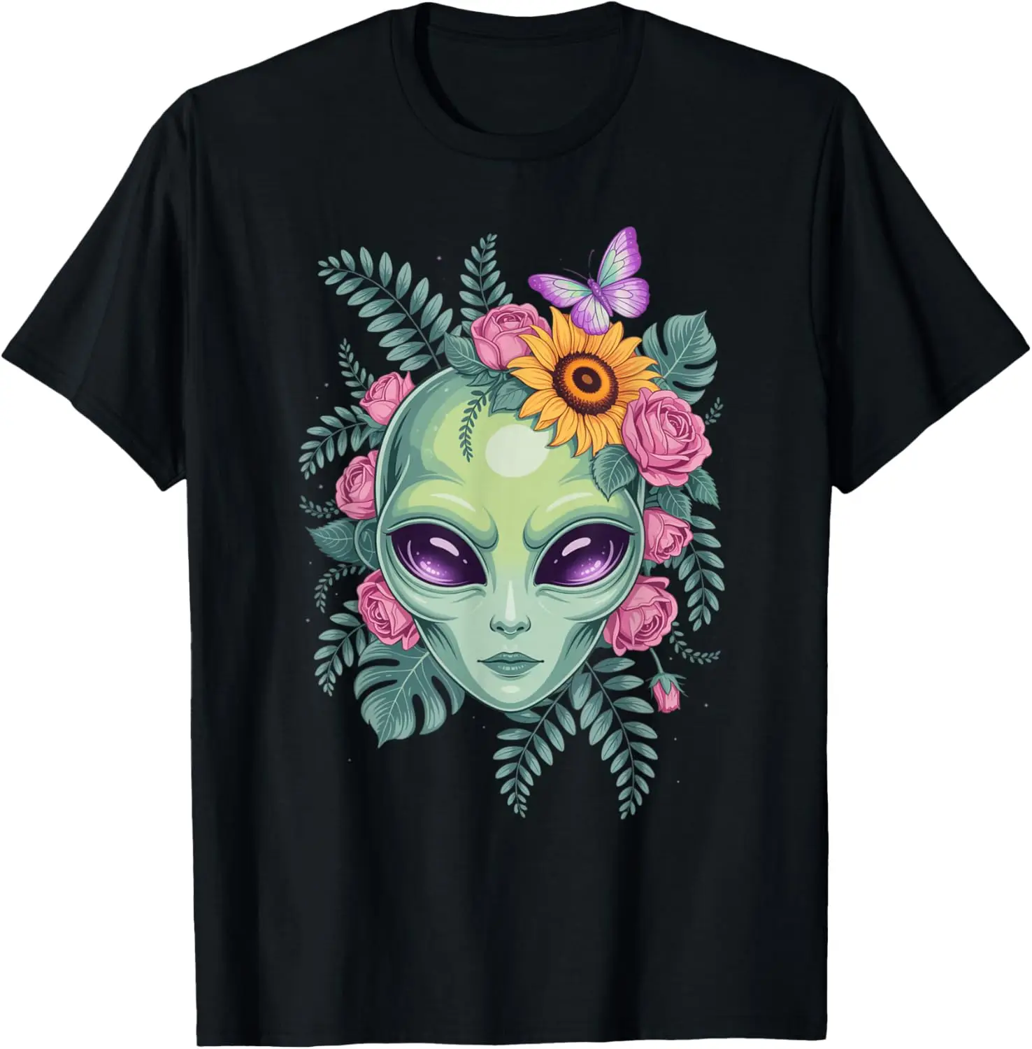 Alien Floral tournesol papillon graphique T-Shirt décontracté coton à manches courtes T-Shirt