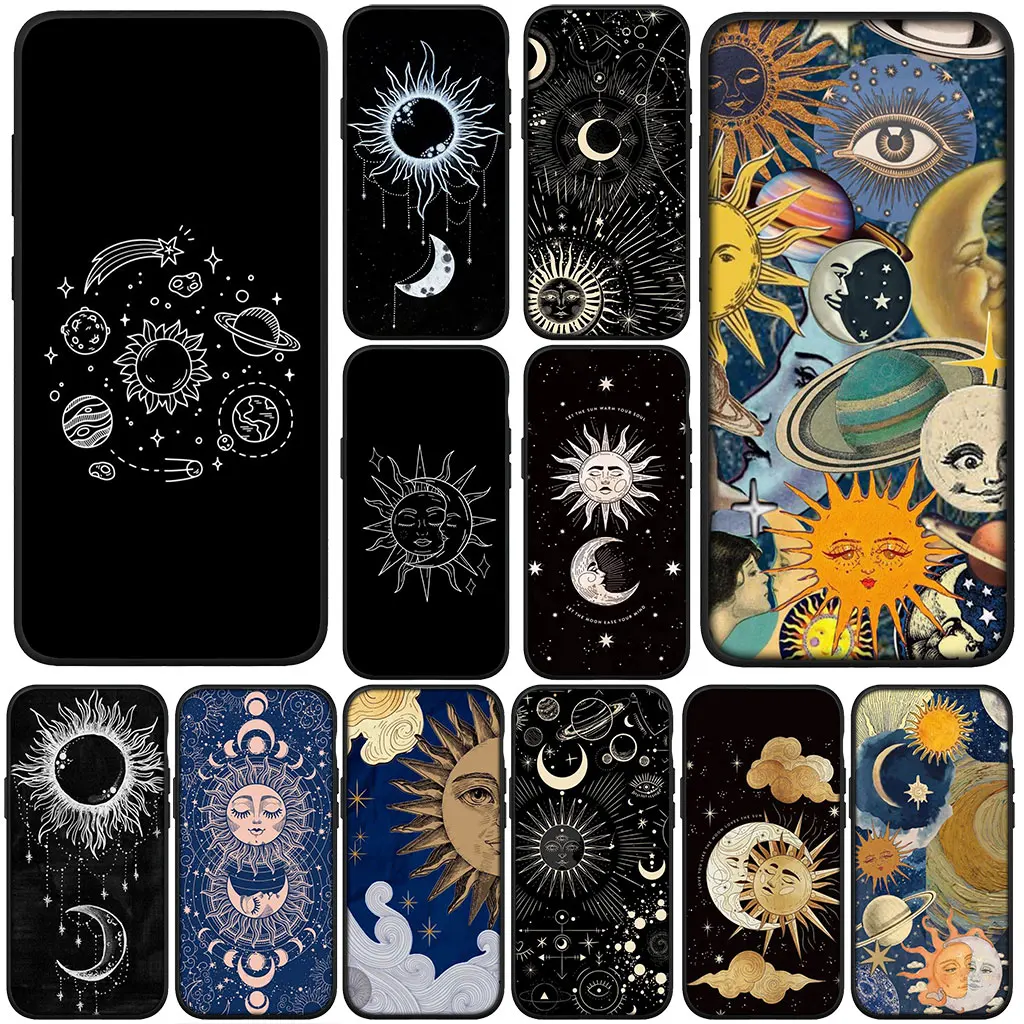 Coque pour Samsung Galaxy S25 S24 S23 Fe Ultra Plus S7 Edge A05 A06 A16 A55 A15 A35 Étui de téléphone Coque de téléphone Soleil Lune Visage amusant Étoiles