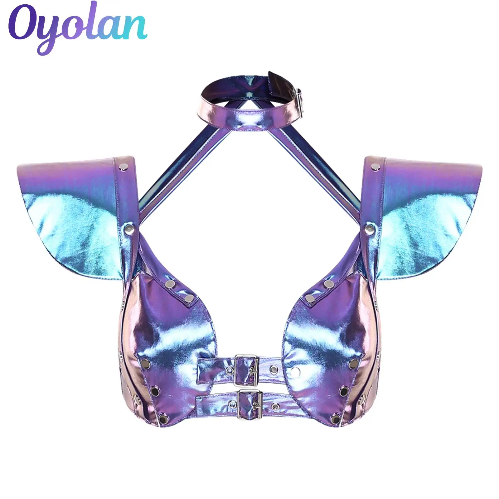 Costume de cosplay de carnaval pour femme, astronaute extraterrestre, steampunk gothique, shrug, crop top métallique brillant, armure, boucles, corset, bustier