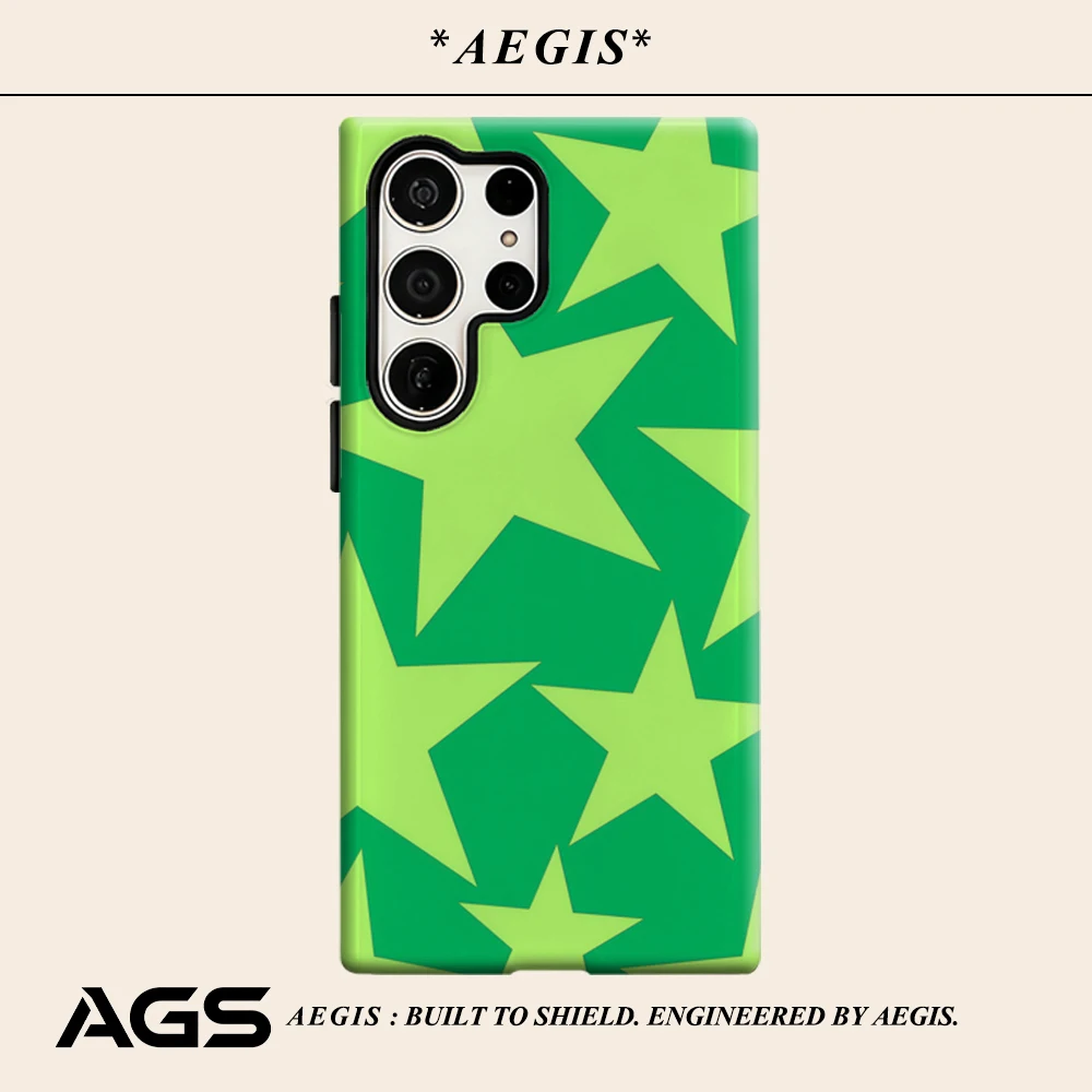 Coque de téléphone Green Star pour Samsung Galaxy S25 Ultra S24 S23 Ultra Plus, coque arrière double couche brillante