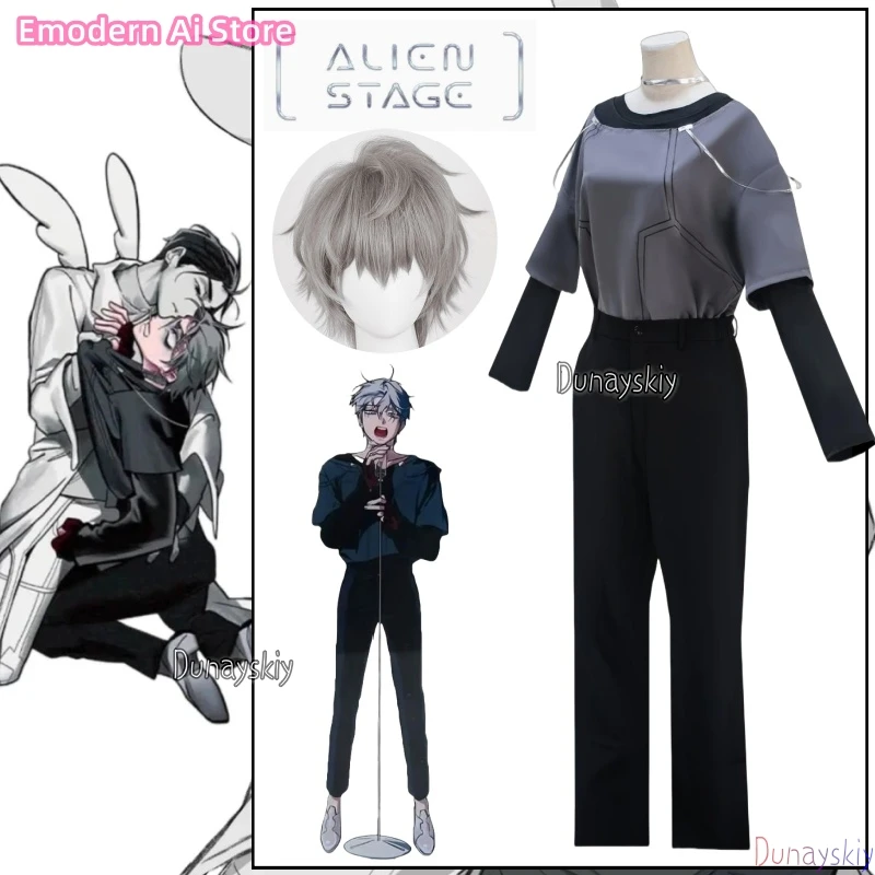 Costume de Cosplay Anime Alien Stage R7 jusqu'à, haut gris + pantalon noir pour femmes et hommes, Costume de fête pour Halloween et carnaval, Costume de jeu de rôle