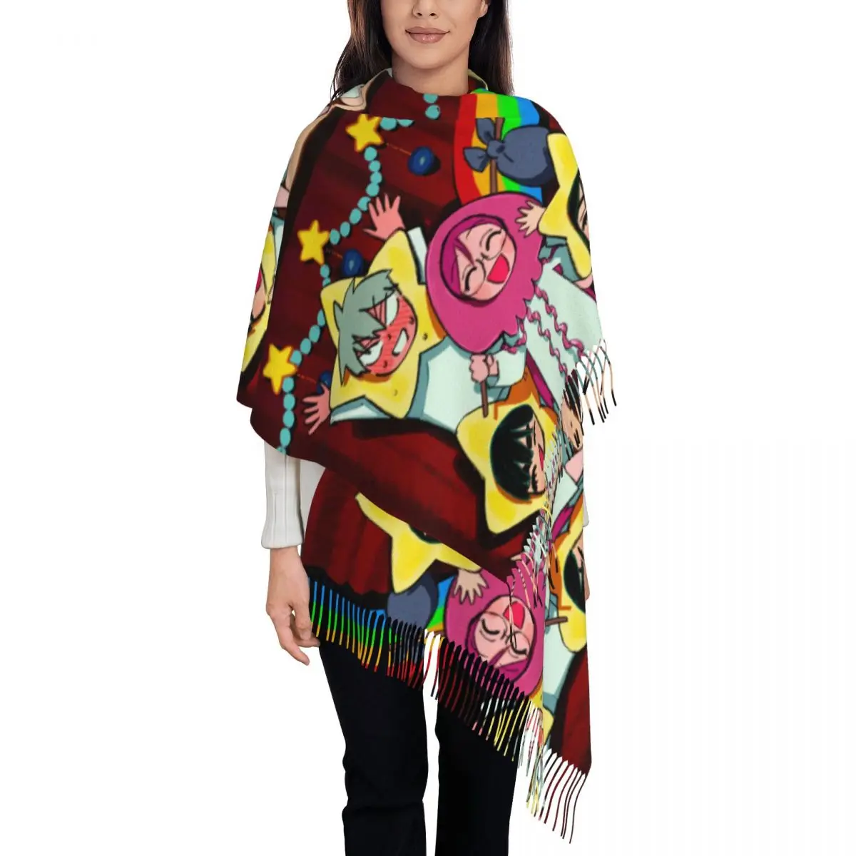 BON BON JELLYFISH PLANET châles enveloppes femmes chaud longue écharpe douce Alien scène Anime Pashminas gland foulards
