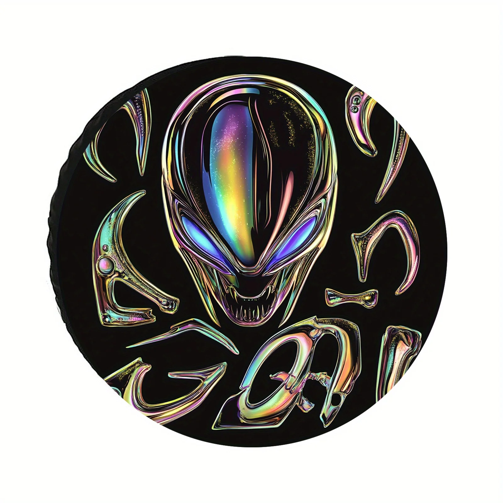 1 housse de roue de secours coupe-vent et résistante aux UV avec motif Alien coloré - Protection de roue en polyester durable, adaptée aux sentiers