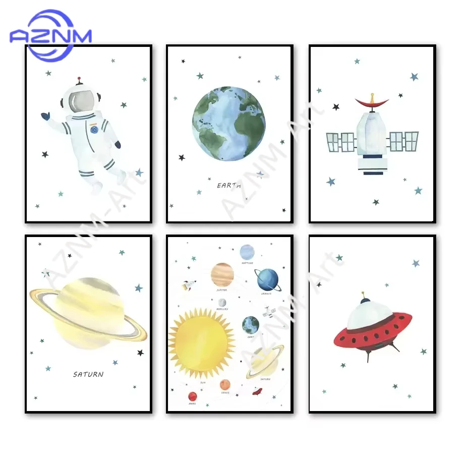 1 toile murale décorative Astronaute, fusée spatiale, planète, étoile - Affiche et impressions pour chambre de bébé et d'enfant
