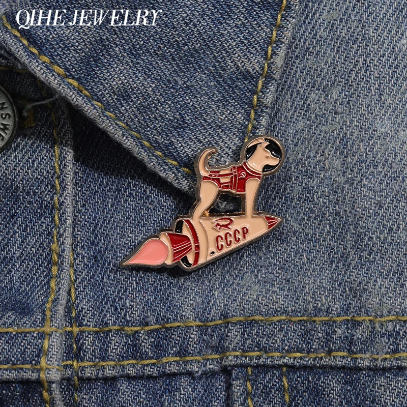 Broche de chien de fusée spatiale de dessin animé, épingles en émail, insignes de chien d'astronome personnalisés, accessoires de bijoux d'animaux drôles, cadeau pour les enfants et les amis