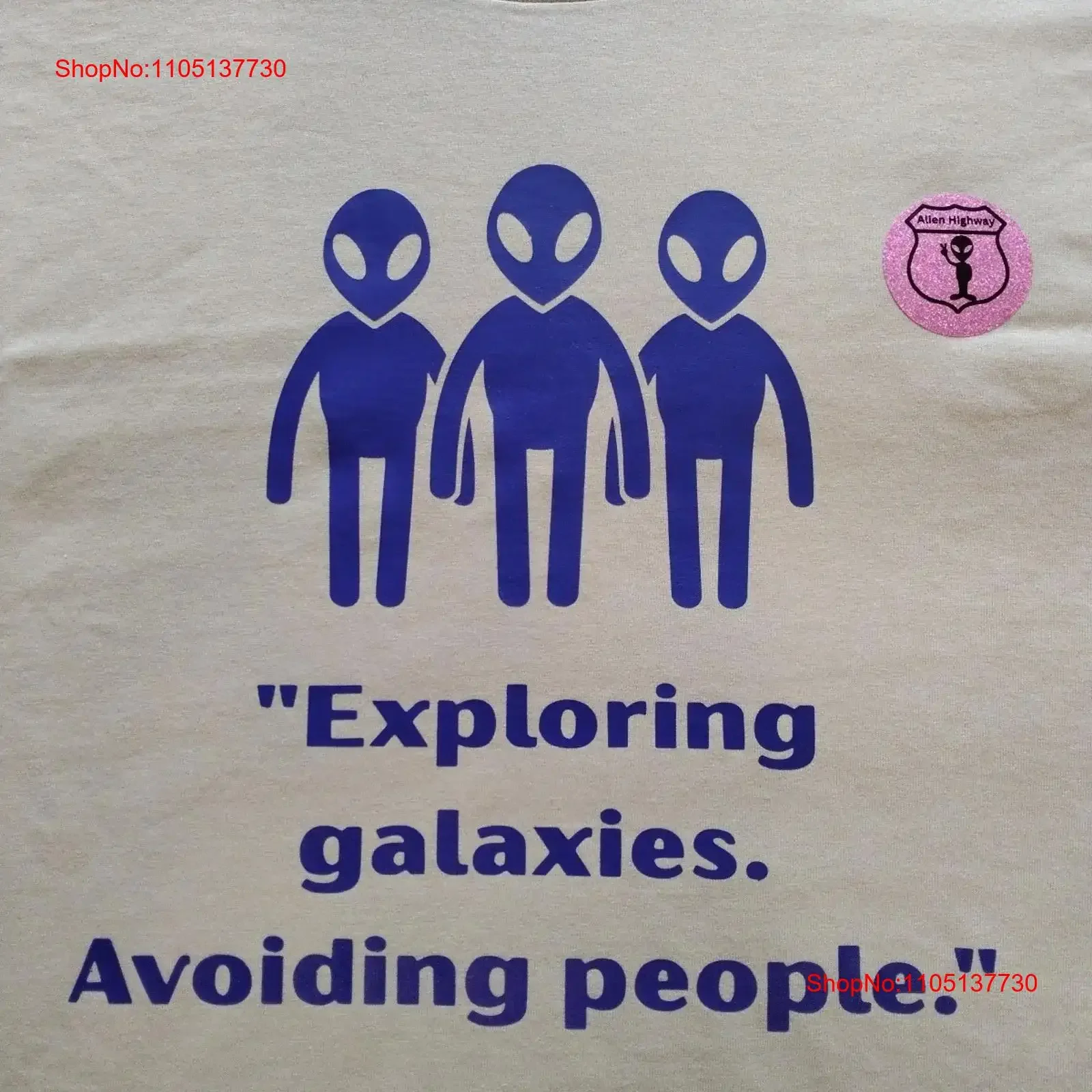 Alien Highway T Shirt Homme L Beige Exploration Galaxies Col rond Street Wear vintage Lavé Respirant vêtements de créateurs