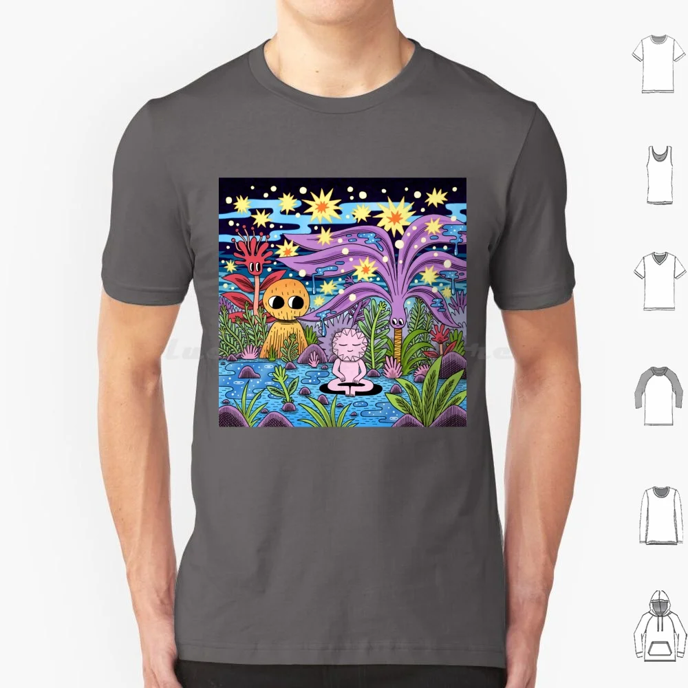 T-shirt de méditation pour hommes, femmes et enfants, 6xl, personnages de paix, étoiles, ciel nocturne, sommeil endormi, mignon, rose, violet, galaxie cosmique