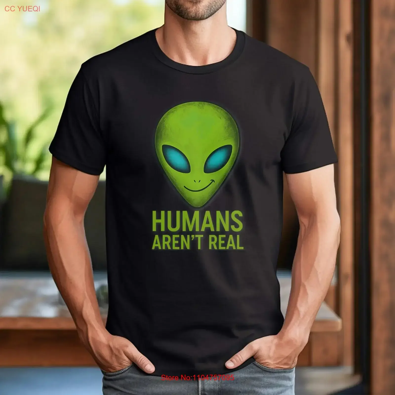 T-shirt drôle au design tête d'alien, « les humains ne sont pas réels », vintage, délavé, extensible, confortable, pour homme, pour tous les jours, unisexe