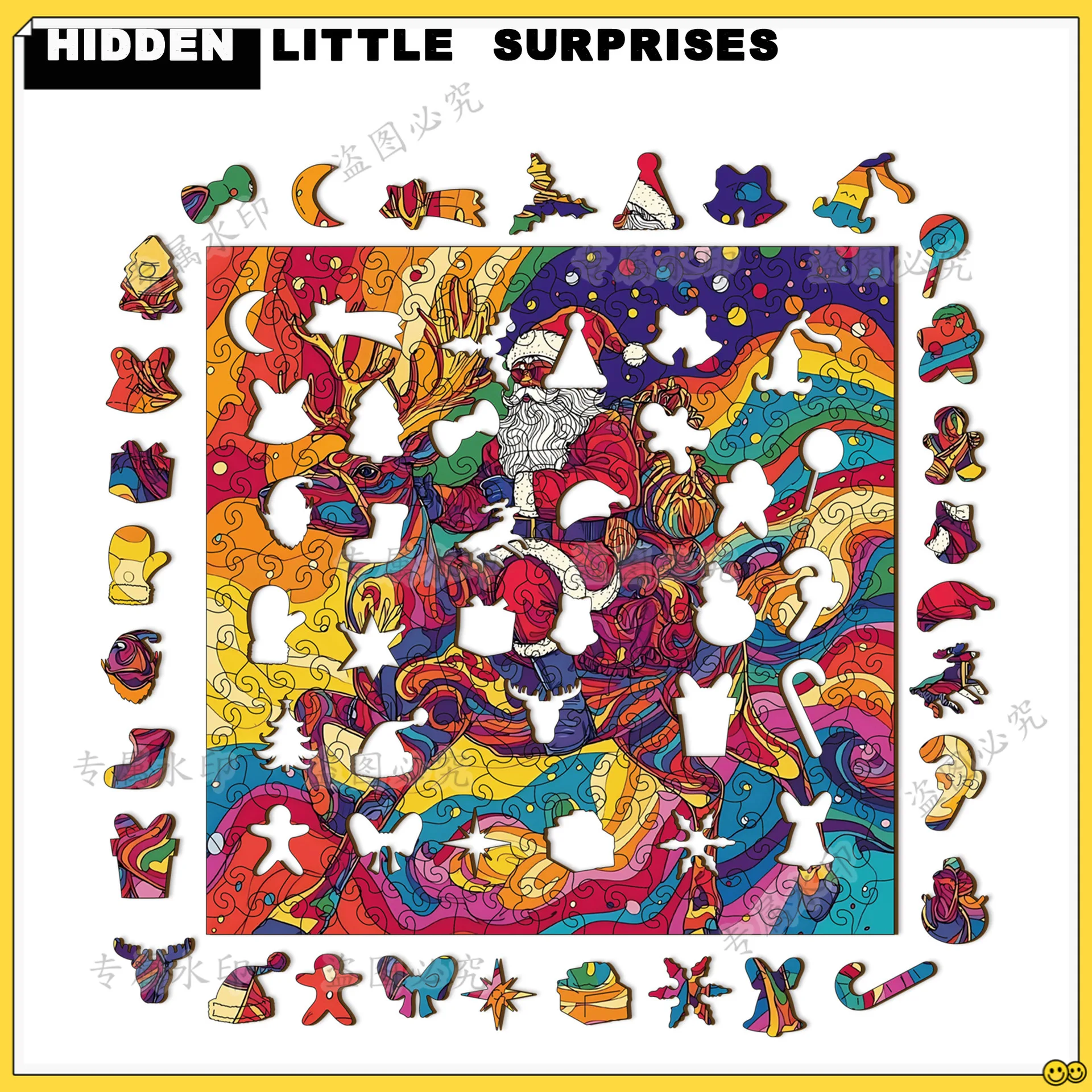 Puzzle de père noël en bois, jeu de Puzzle extraterrestre irrégulier, tirelire, cadeau, jeu de décompresser