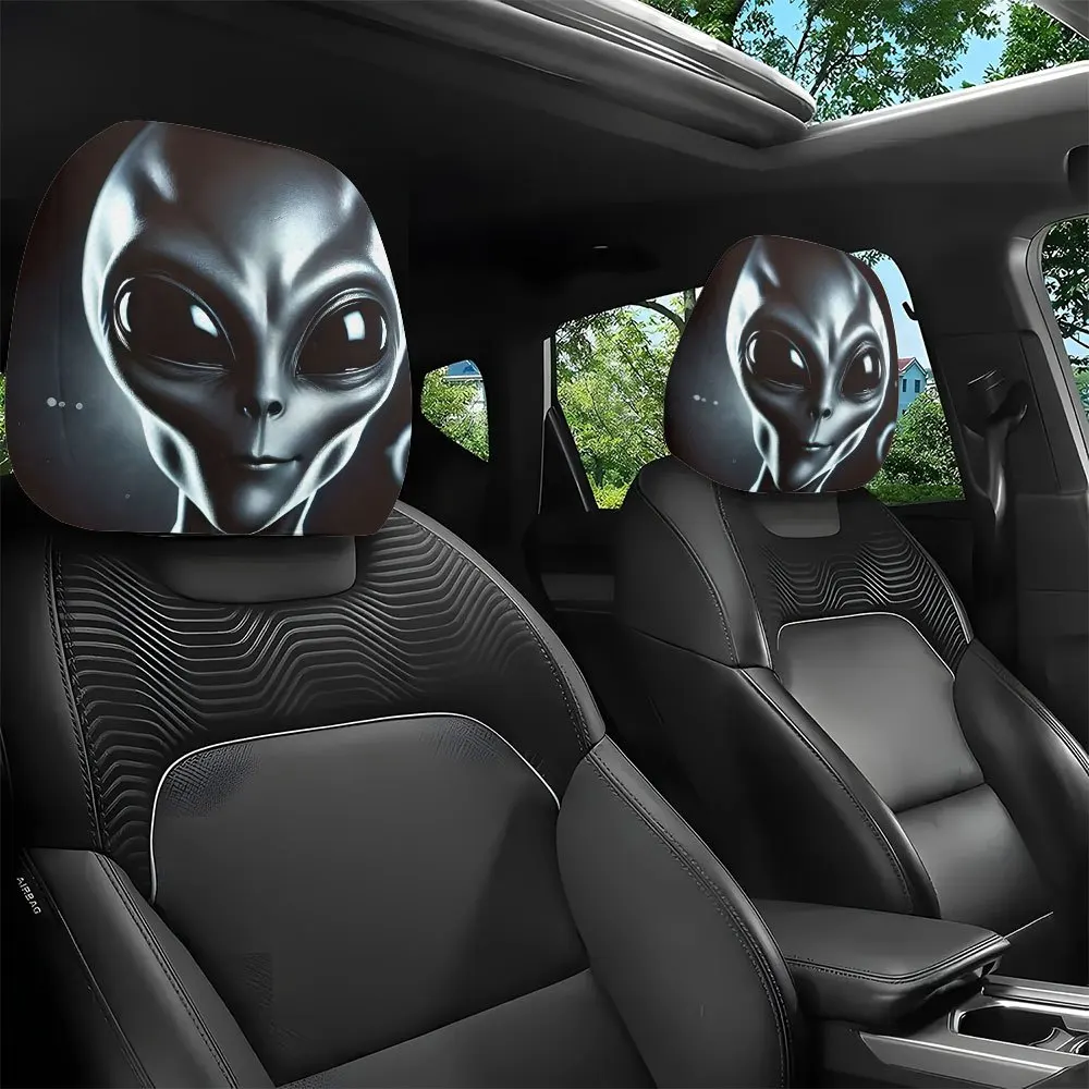 2 housses de appui-tête de voiture à imprimé extraterrestre futuriste, décor lavable pour les longs trajets en voiture afin de soulager la fatigue du cou