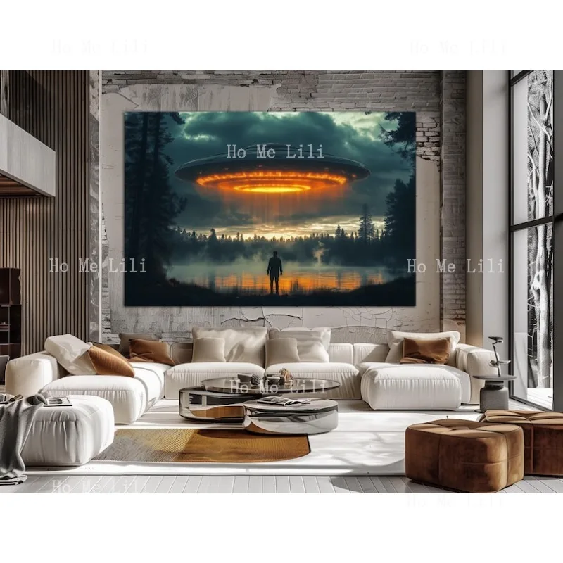 Ufo Dark Academia décor science-fiction Alien Space fantaisie Unique grand mur Art pendaison de crémaillère cadeau toile impression affiche