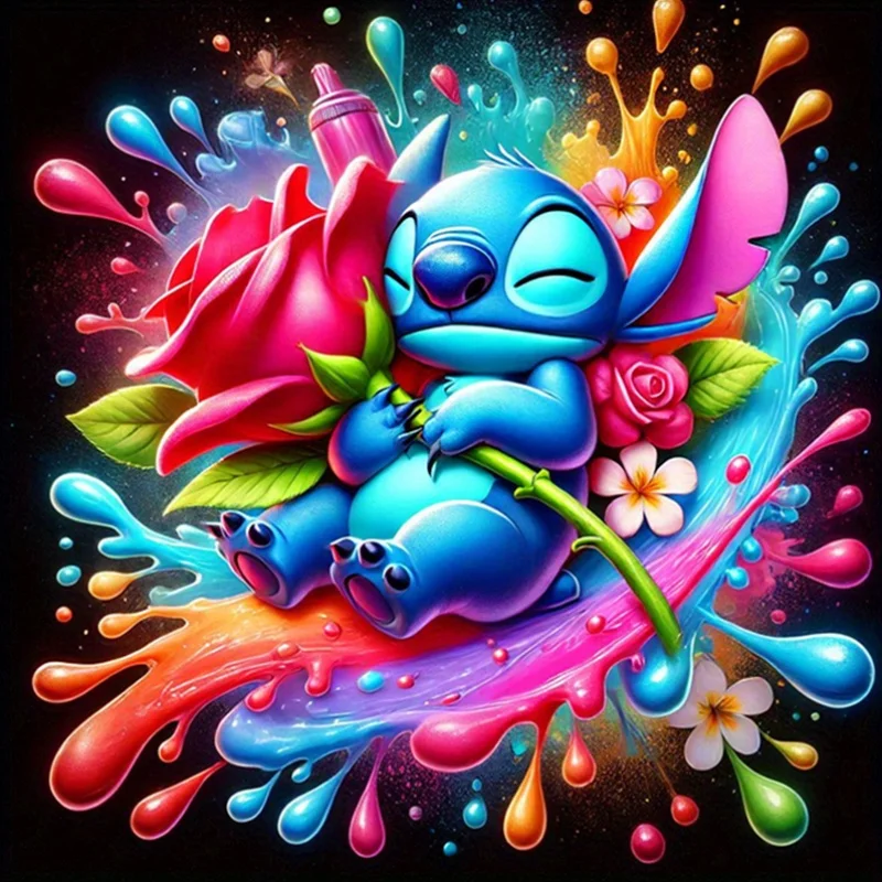 Kit de peinture diamant rond de grande taille 5D à faire soi-même, avec point de Lilo & Stitch, un chien extraterrestre de dessin animé endormi,