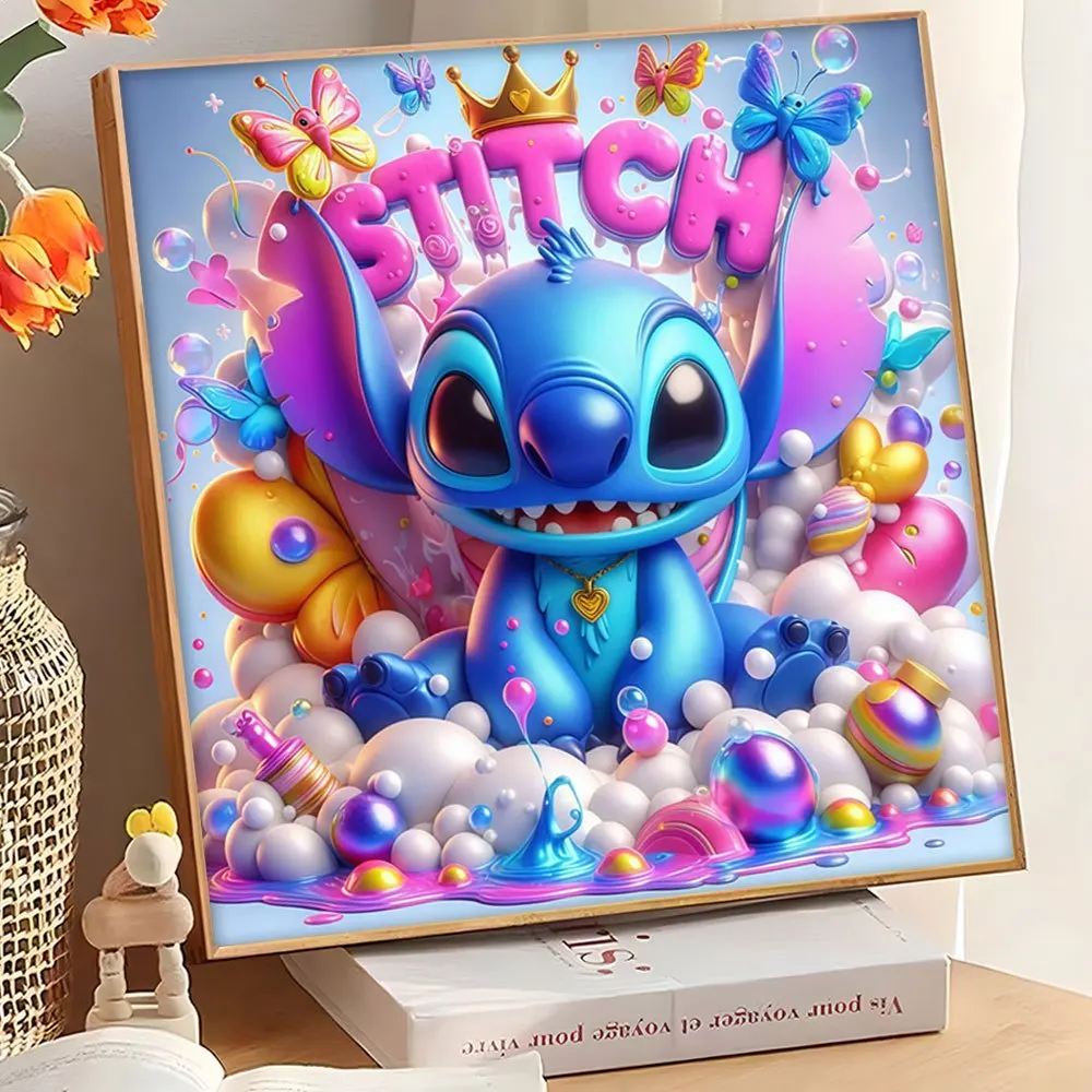 Ensemble de peinture artistique diamant Disney 5D, 1 pièce, avec un personnage de dessin animé extraterrestre orné d'une couronne et entouré de papillons