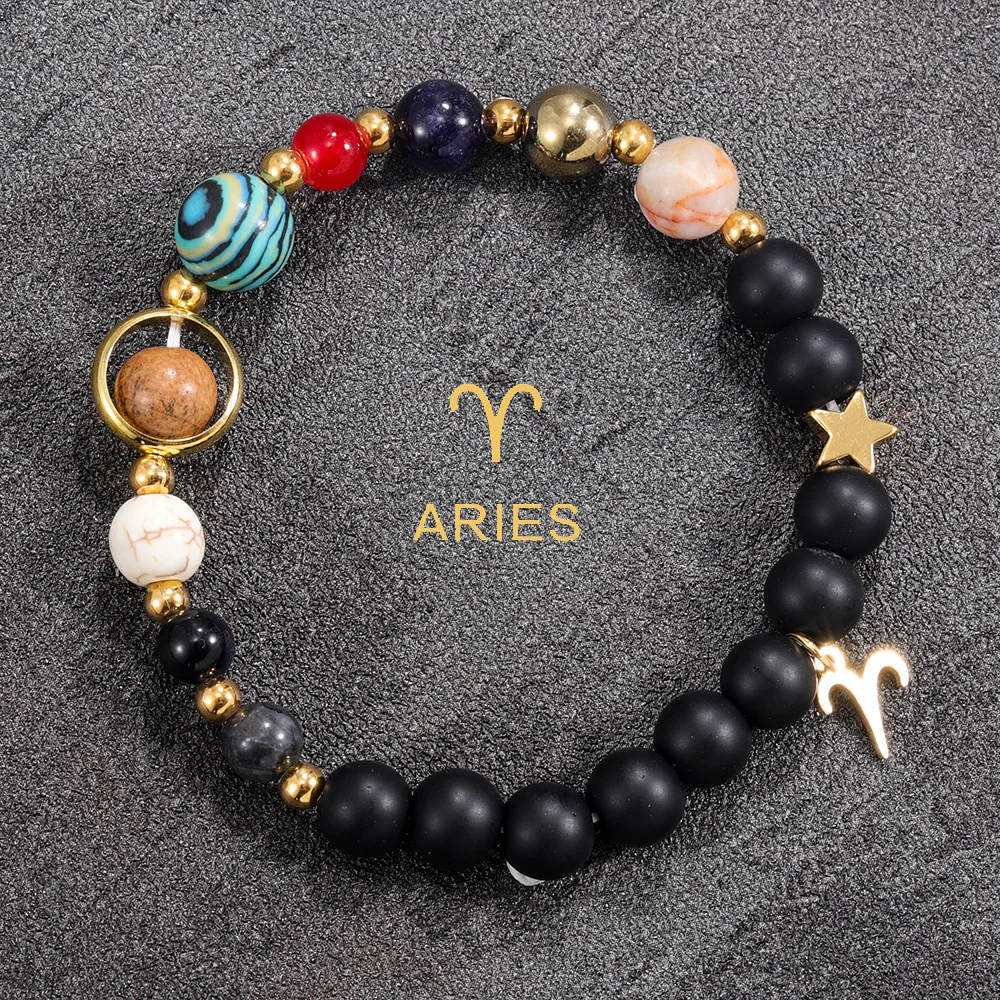 Cadeau de bracelet 12 constellations – Galaxie planète et bijoux en pierre naturelle, cadeau du zodiaque parfait pour son anniversaire ou Noël
