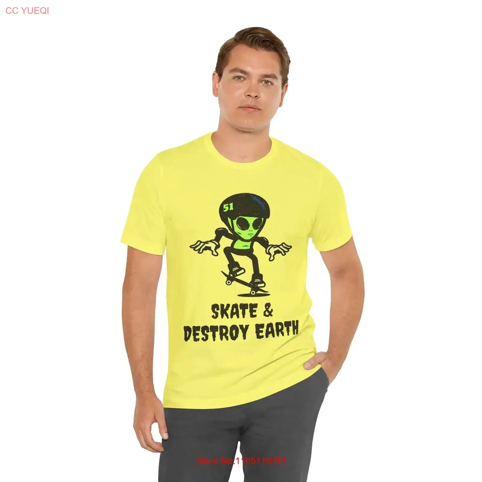 Alien Skate Destroy Earth T Shirt Jersey vintage lavé doux vêtements de créateur graphique élégant homme streetwear