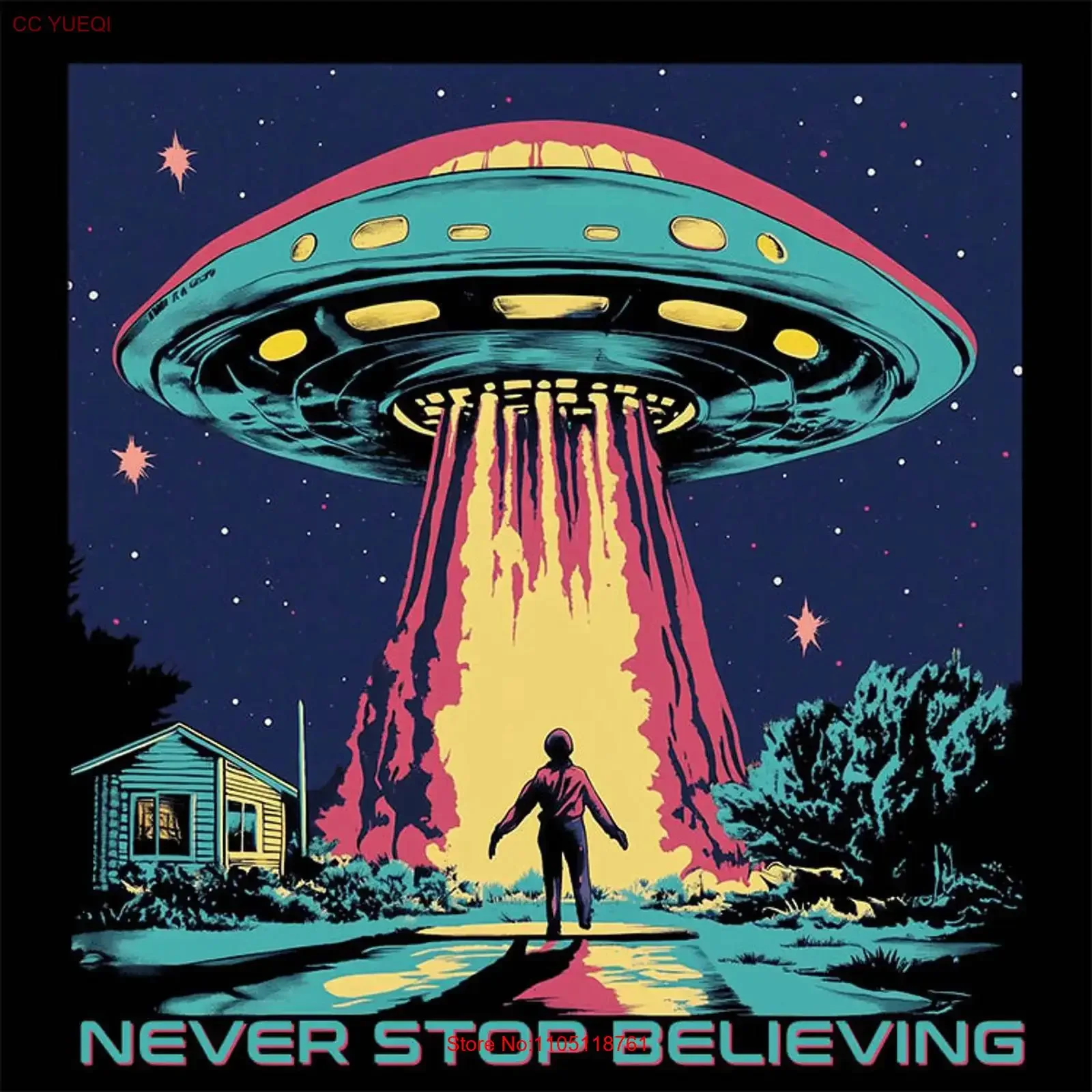 UFO Never Stop Believing Alien T-shirt en coton pour hommes vintage lavé étiré respirant vêtements de créateur haut pour un usage quotidien