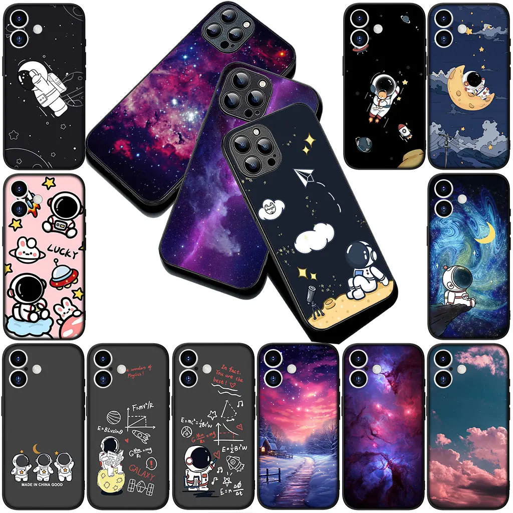 Coque de téléphone souple pour Apple iPhone 17 Air 12 13 Pro Max Mini ProMax 7 + 8 Plus, motif Univers Galaxie Lune Astronaute Étoiles