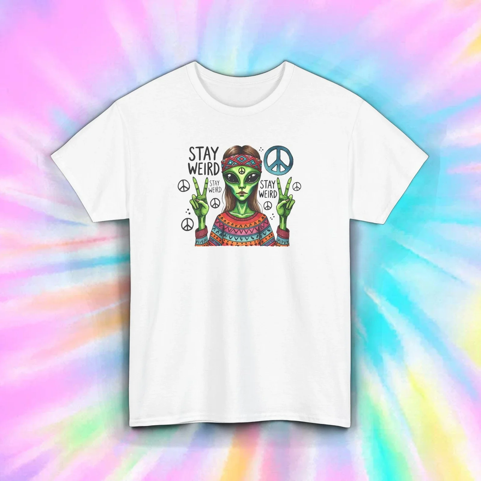 Restez bizarre Alien Hippie T-Shirt drôle paix rétro Boho Festival S-5XL