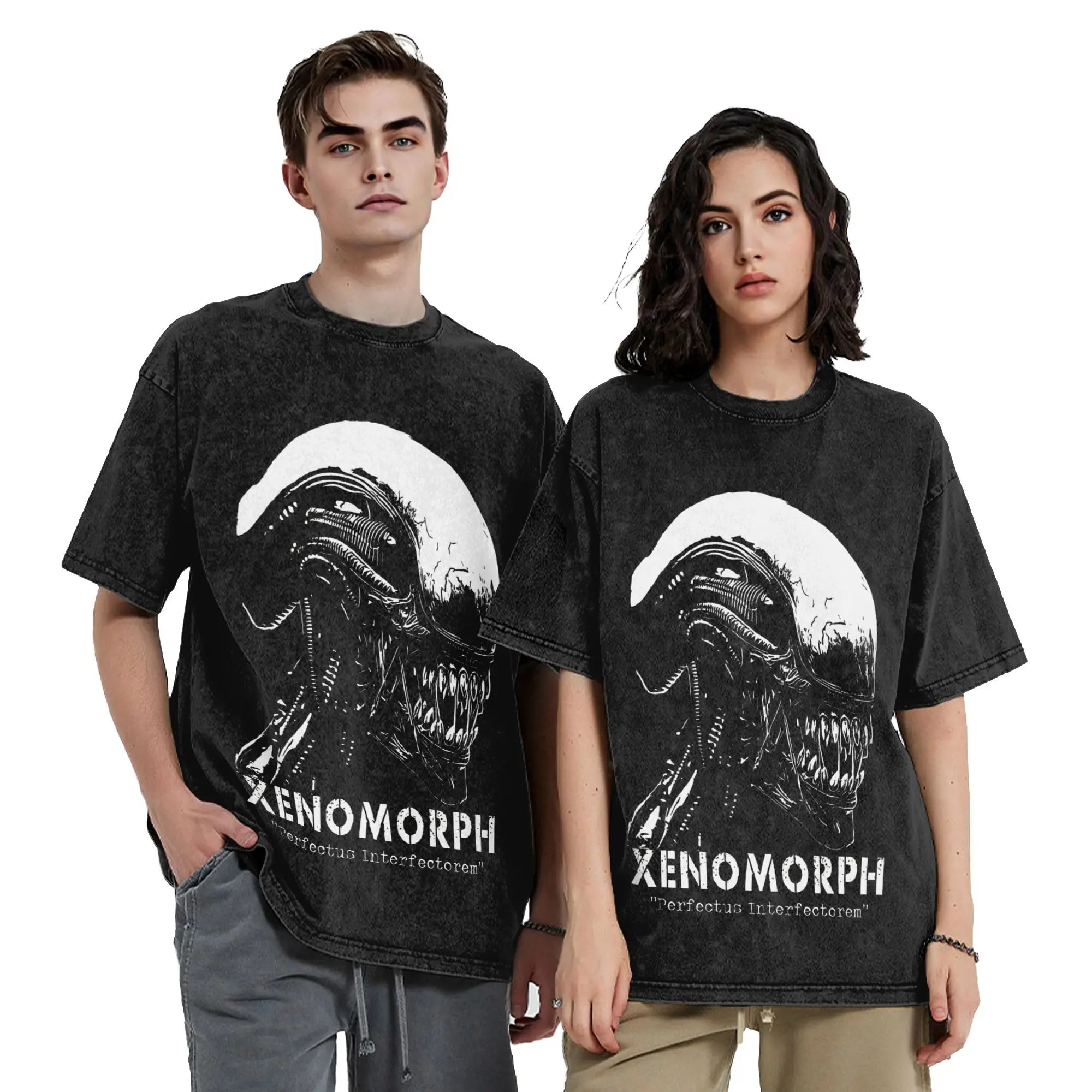 Streetwear Alien Xenomorph Vintage lavé t-shirt pour hommes femmes coton à manches courtes col rond vêtements d'été