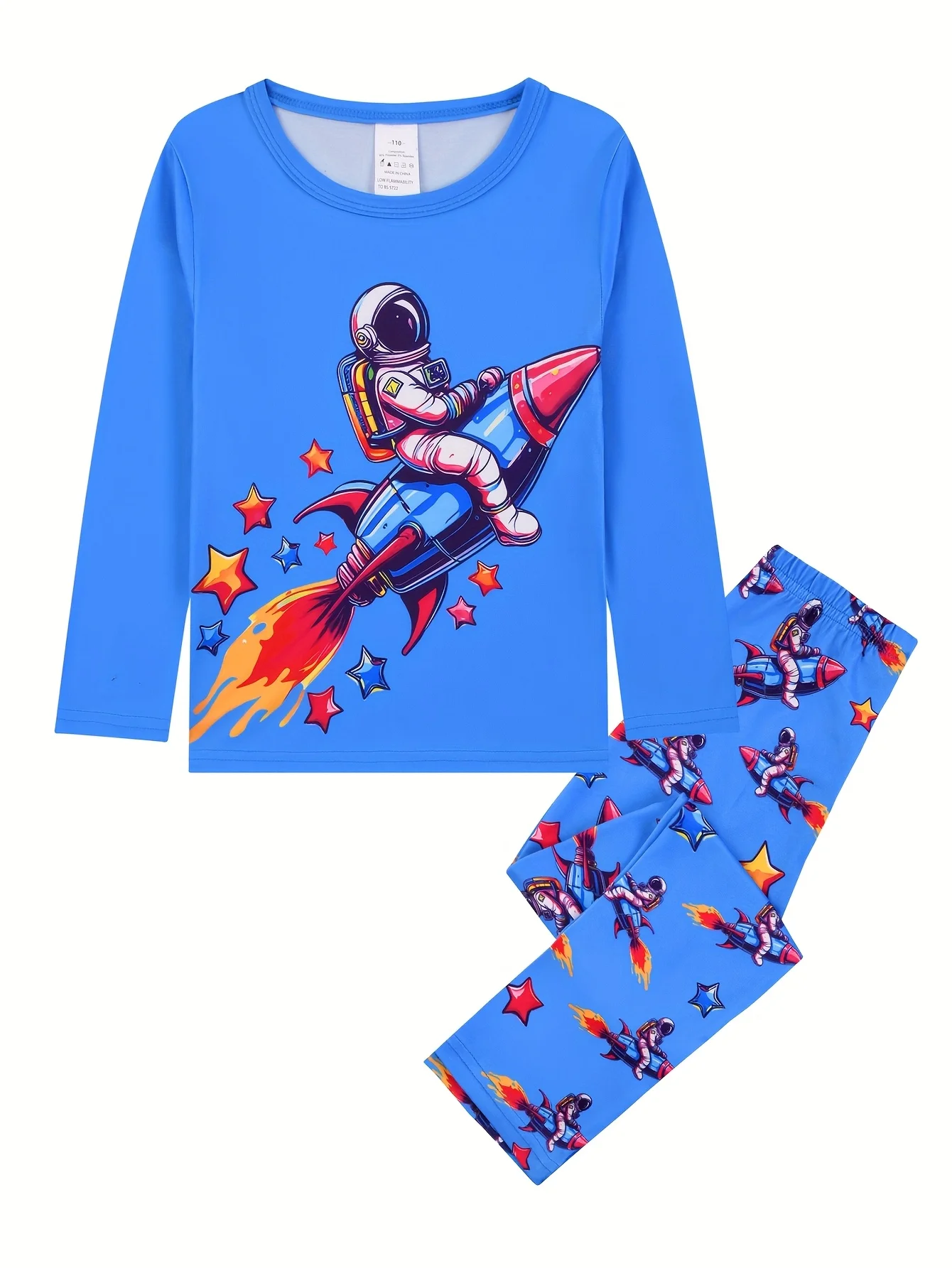 3D fusée astronaute rêveur bleu vaisseau spatial fusée donc ciel garçons à manches longues pantalons longs col rond ensemble pour les vacances de la fête nationale