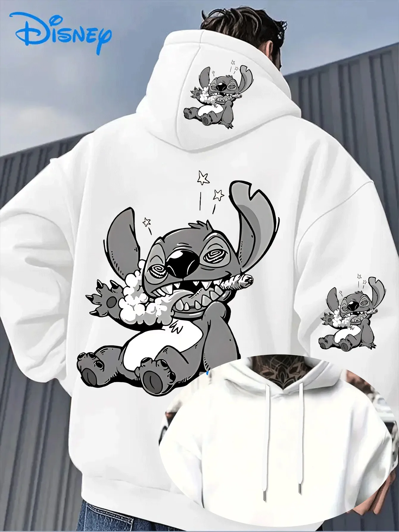 Sweat à capuche unisexe en coton polaire Disney Lilo Stitch, couleur blanche, personnage de dessin animé drôle bleu Alien imprimé, conception de manches avant et arrière