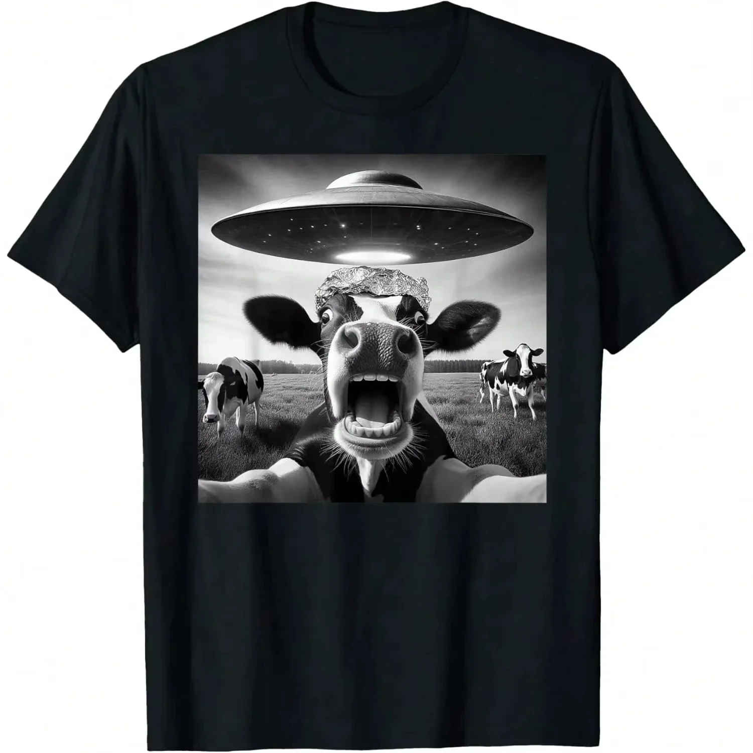 T-shirt décontracté à col rond pour homme, motif vache amusante par selfie extraterrestre, mème hilarant, nouveauté, manches courtes, pro-choice