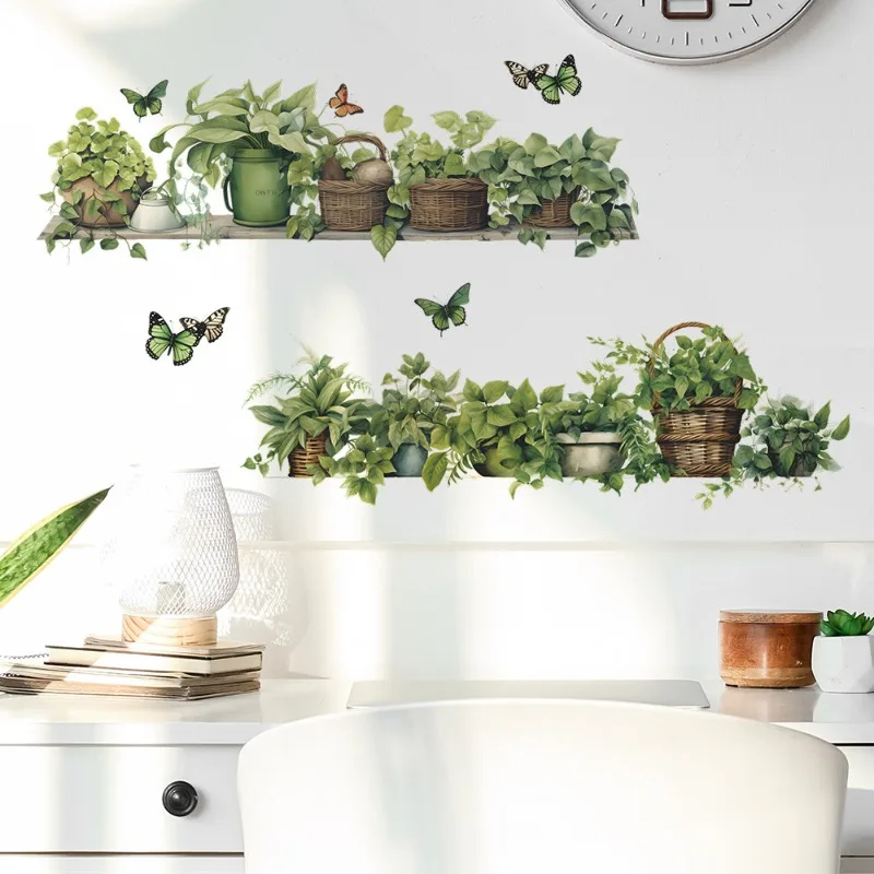 Plantes vertes tropicales en pot papillon mouche 3D autocollants muraux en vinyle pour la décoration de la maison esthétique salle aménagement paysager Art Mural