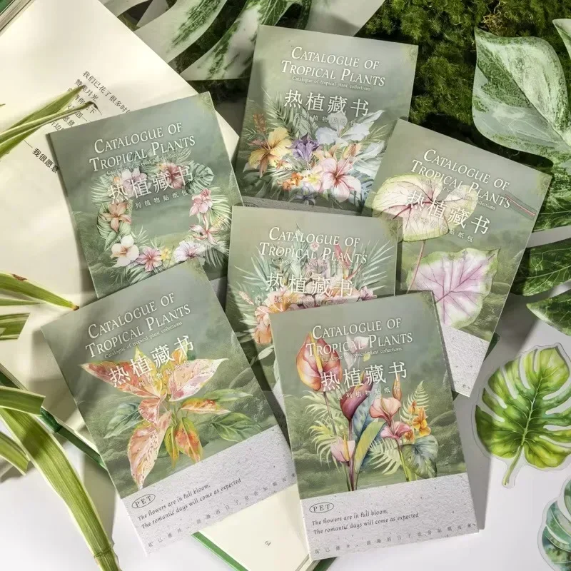 Collection d'autocollants de plantes tropicales, collage de matériaux de base, fournitures de fond, écriture GT Scrapbook, coupe 140x90mm, 20 feuilles