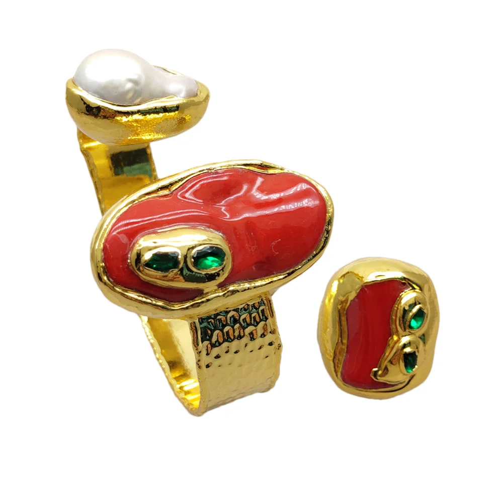 YYGEM – ensemble de bijoux pour femmes, corail rouge, vert, pierre de cristal, Bracelet épais, ensemble de bagues en corail rouge
