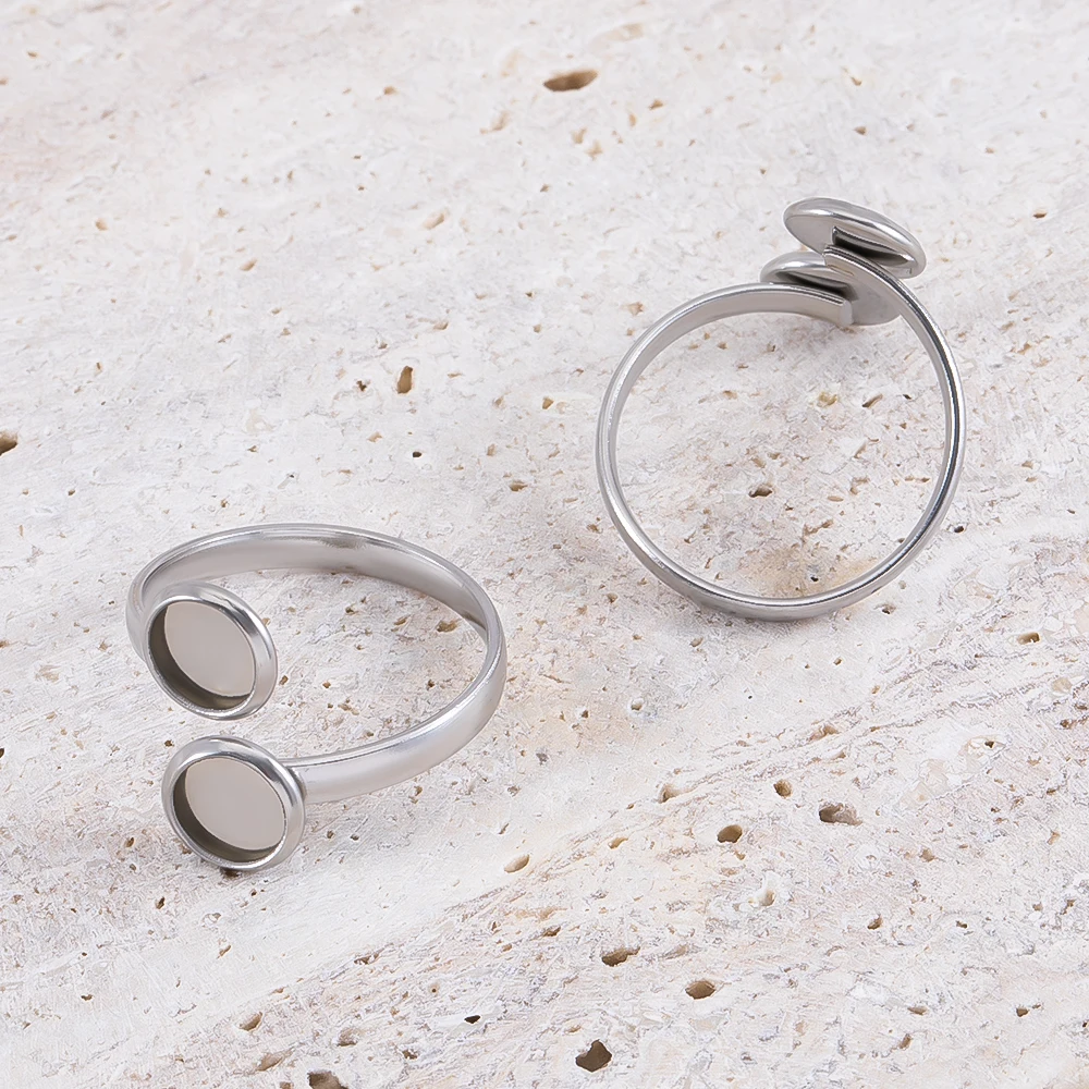10 pièces réglable ouvert bague réglage en acier inoxydable 4mm 8mm 12mm rond blanc anneau Base lunette Cabochon bijoux à bricoler soi-même faisant