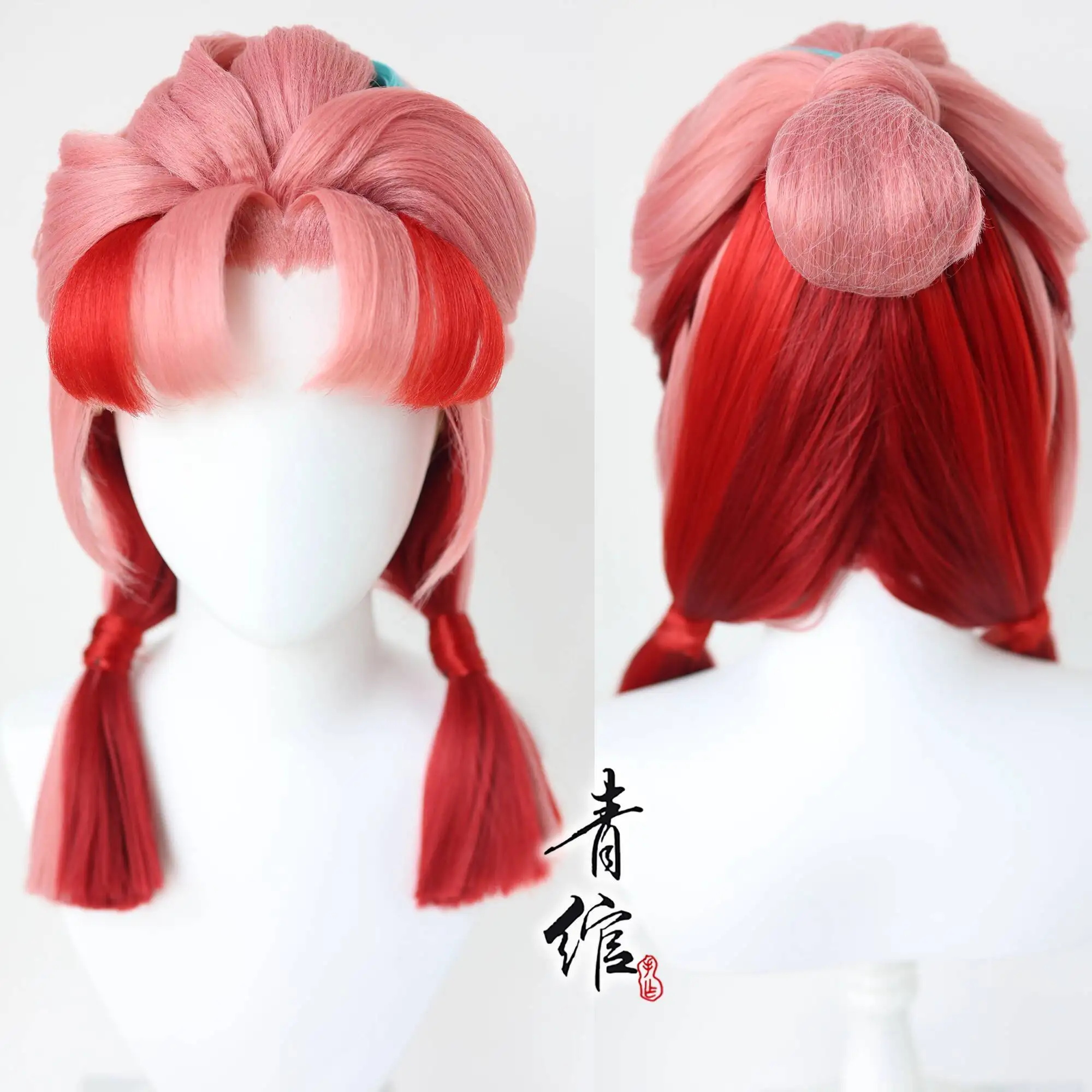 Perruque de Cosplay rose en forme de renard Daji à neuf queues, honneur des rois Cos Qingqiu, couverture de perruque à montage en Surface, pour fête d'halloween